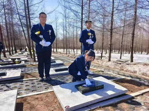黑龙江省孙吴县北水台山生态人文园工作人员为群众提供代祭扫服务。 徐微   摄